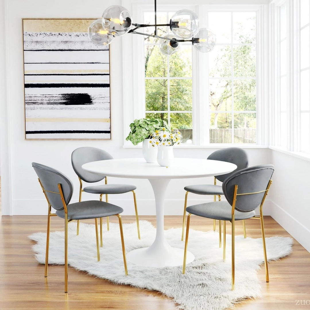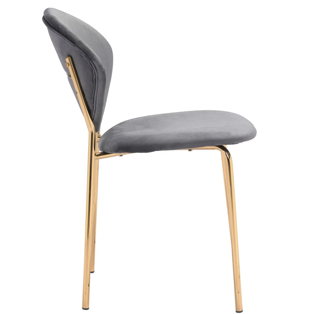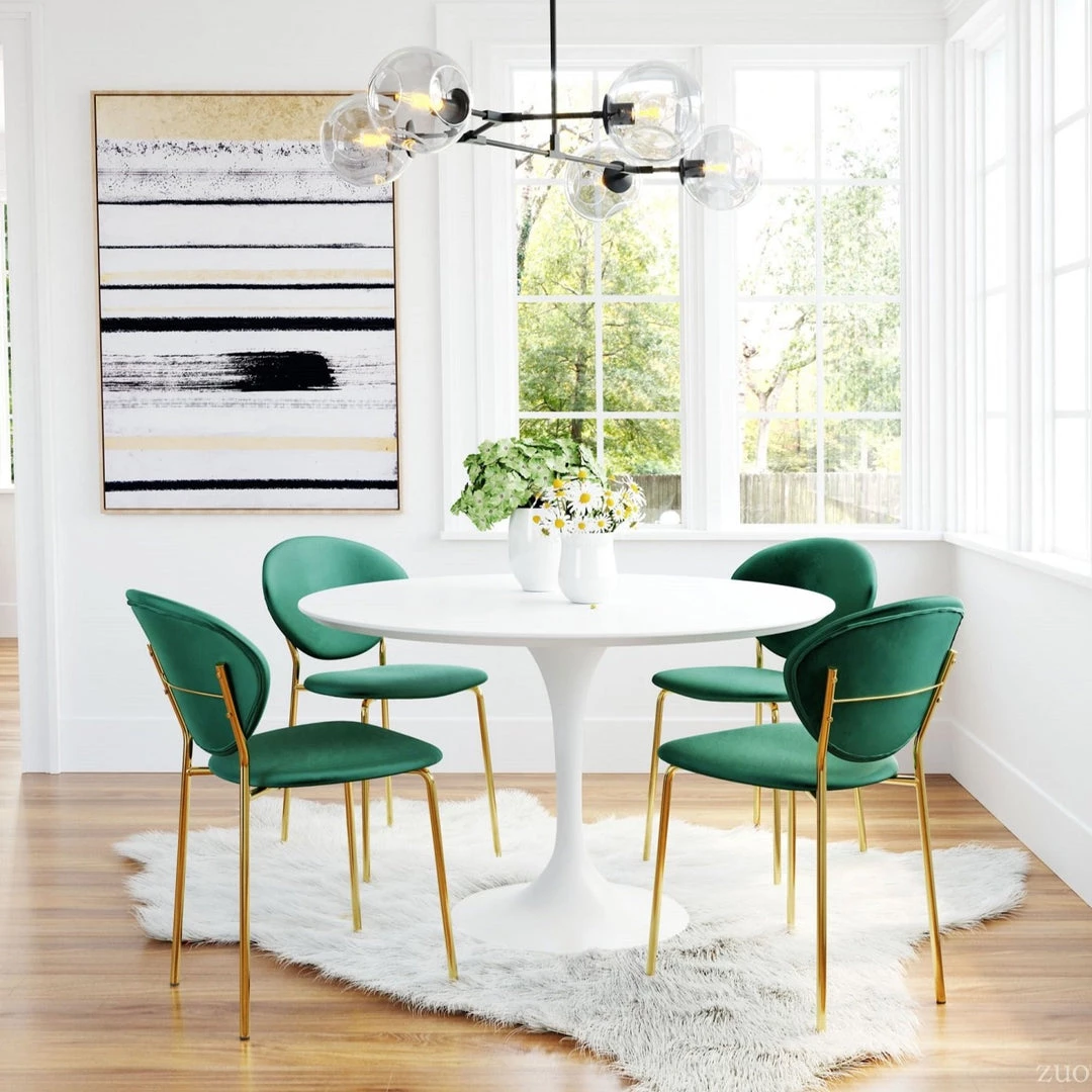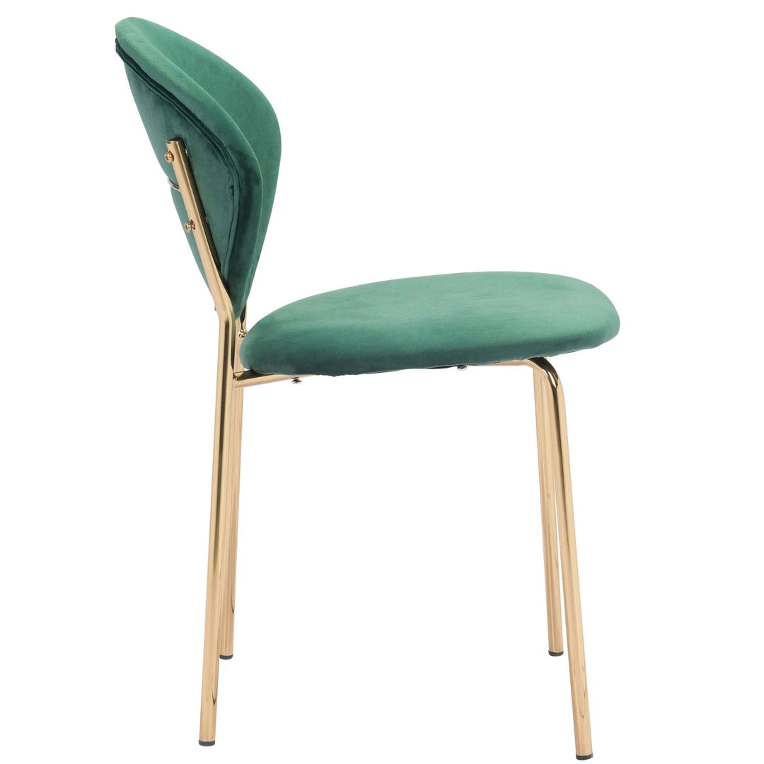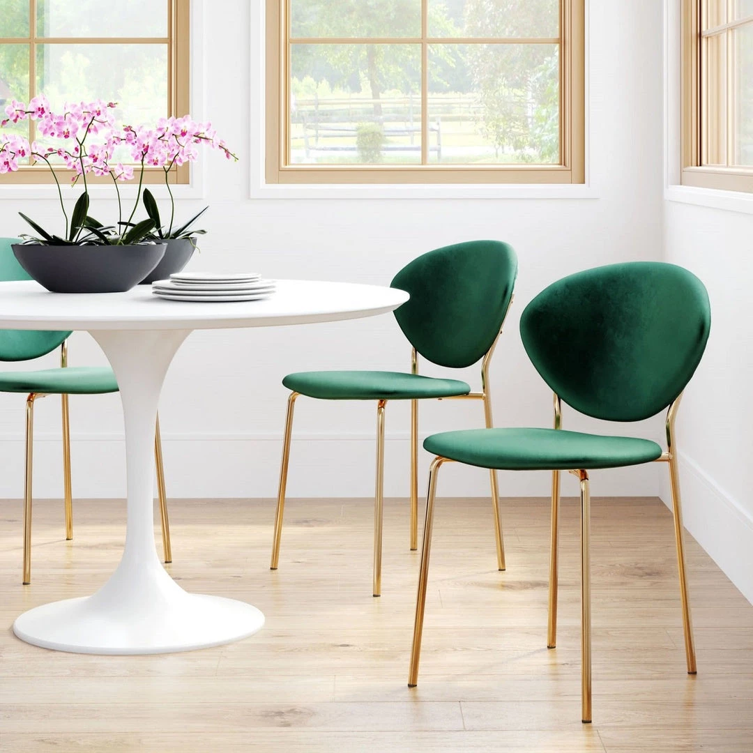 These soft velvet upholstered dining chairs will dress up your dining space with their glam polished gold frame.