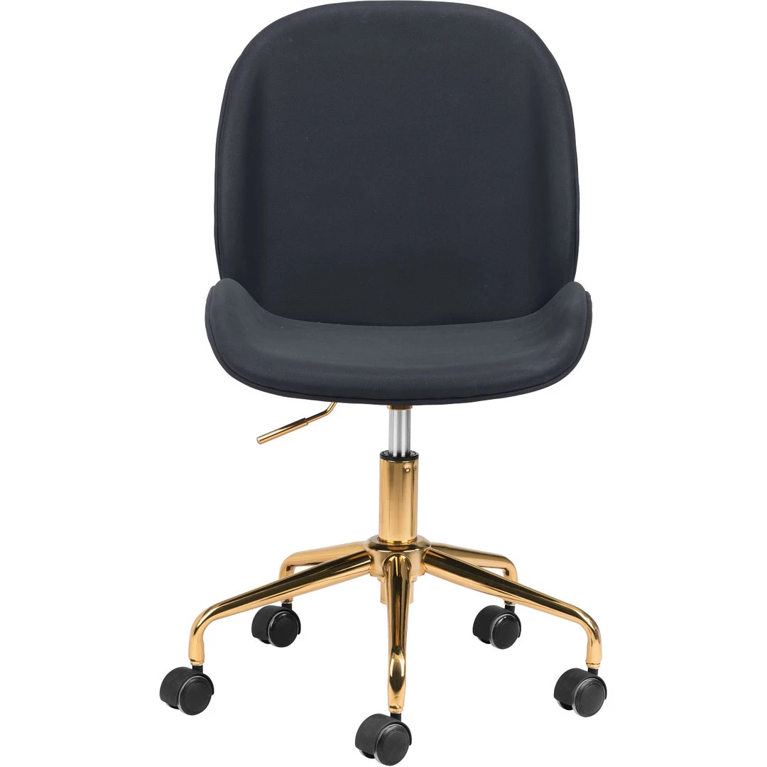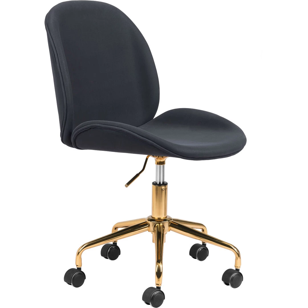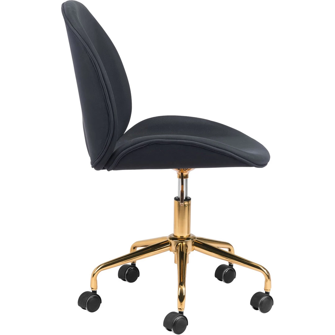 The Miles Office Chair has glam and maximalist design and looks great in any space from modern to boho chic. The solid steel frame is electroplated with a gold finish and the firm seat and back are covered in a smooth velvet polyester fabric.