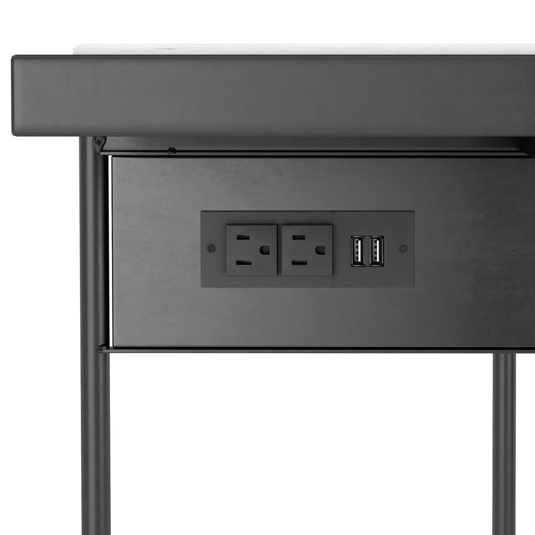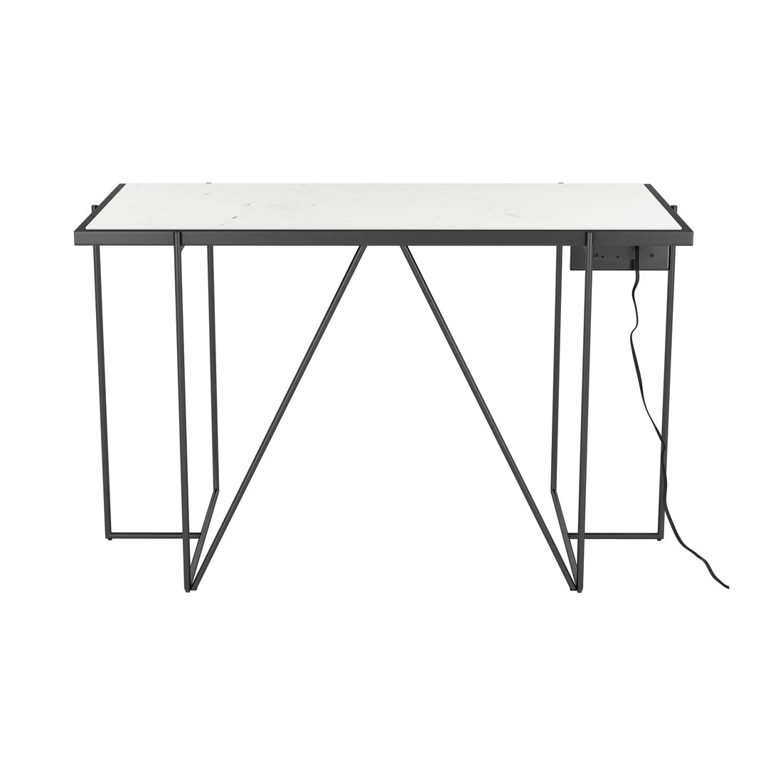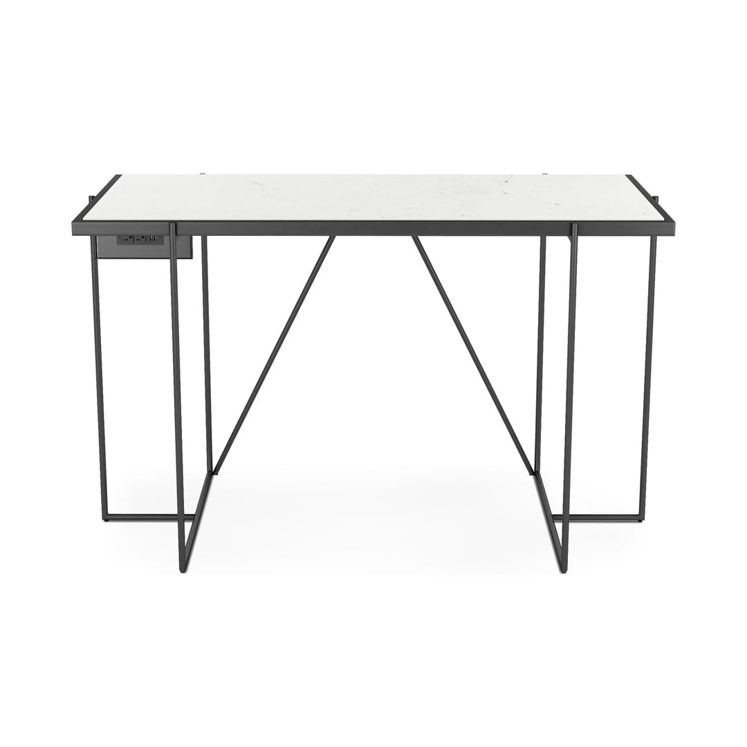 Featuring an architectural matte black metal frame and white marble top, the Optic desk is perfect for the modern minimalist. Includes a built-in Electric Socket and USB port for maximum function.